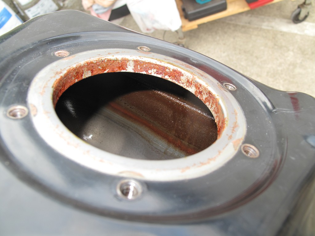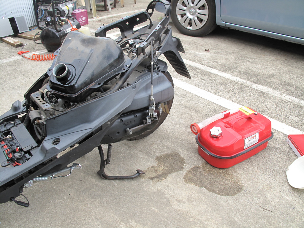 家に帰りタンクキャップを開けて覗いてみたら底は茶色になっていた。ガソリンもかなり臭い。