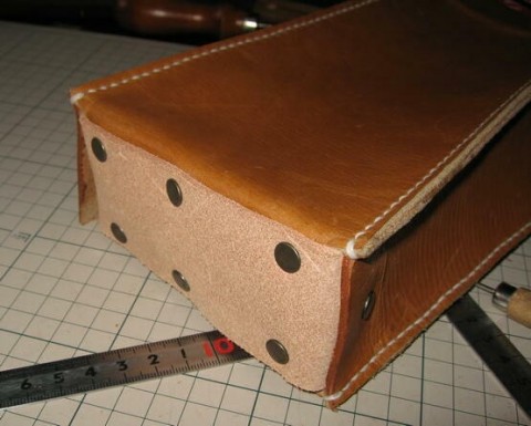 底部は見えないから床革をカシメて縫わないことにした。ここは手抜きである。